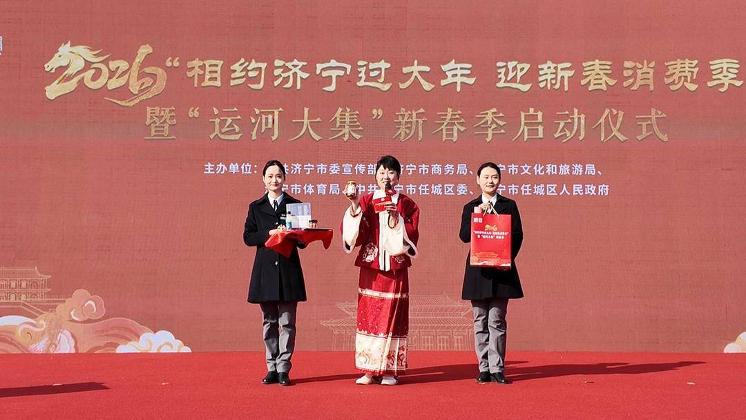 2月7日,2026“相约济宁过大年・迎新春消费季”暨“运河大集”新春季启动仪式在全民健身广场盛大启幕。活动以丰富群众文体娱乐生活为核心,联动商贸、文化、旅游、体育等多领域释放消费活力,为马年新春勾勒出喜庆祥和、热气腾腾的文化消费图景。