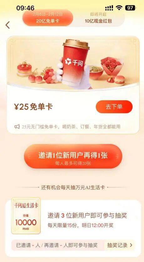 2月6日,千问APP“春节30亿大免单”正式启幕,一句“用AI点奶茶”的轻量化指令,便如星火燎原般点燃全国消费热情——无需烦琐操作,一句话便可免单,让都市用户争相涌入,连点单系统都热到不行,陷入短暂“卡顿”。