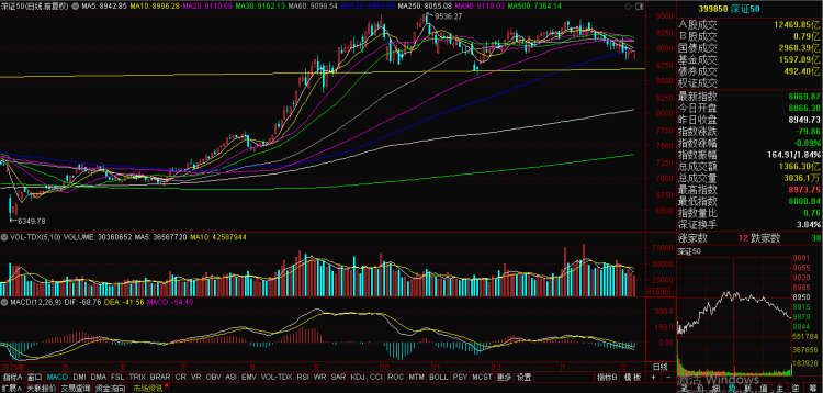 通达信统计数据显示,2024年2月5日最低点起截至本周收盘:上证50、深证成指、中小100、创业板指、科创50、深证50、北证50七大成分指数的区间涨幅分别是40.39%、80.99%、78.09%、118.24%、123.74%、59.60%、114.44%;上证指数、深证综指、中小综指、创业板综、科创综指5大综合指数的战绩分别是54.29%、90.44%、90.65%、127.39%、132.42%。从衡量整个A股的“平均股价指数”来看,全周涨幅是108.32%。