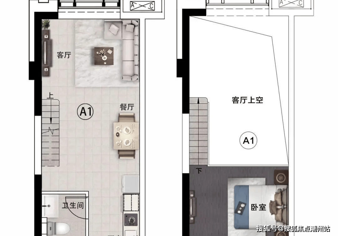 平层公寓 | 46.2㎡二室二厅一卫户型方正 窗景明媚百变loft产品 | 49.72㎡一室二厅一卫4.5米层高 挑空客厅舒适度已然拉满餐客厨一体化设计放大生活质感