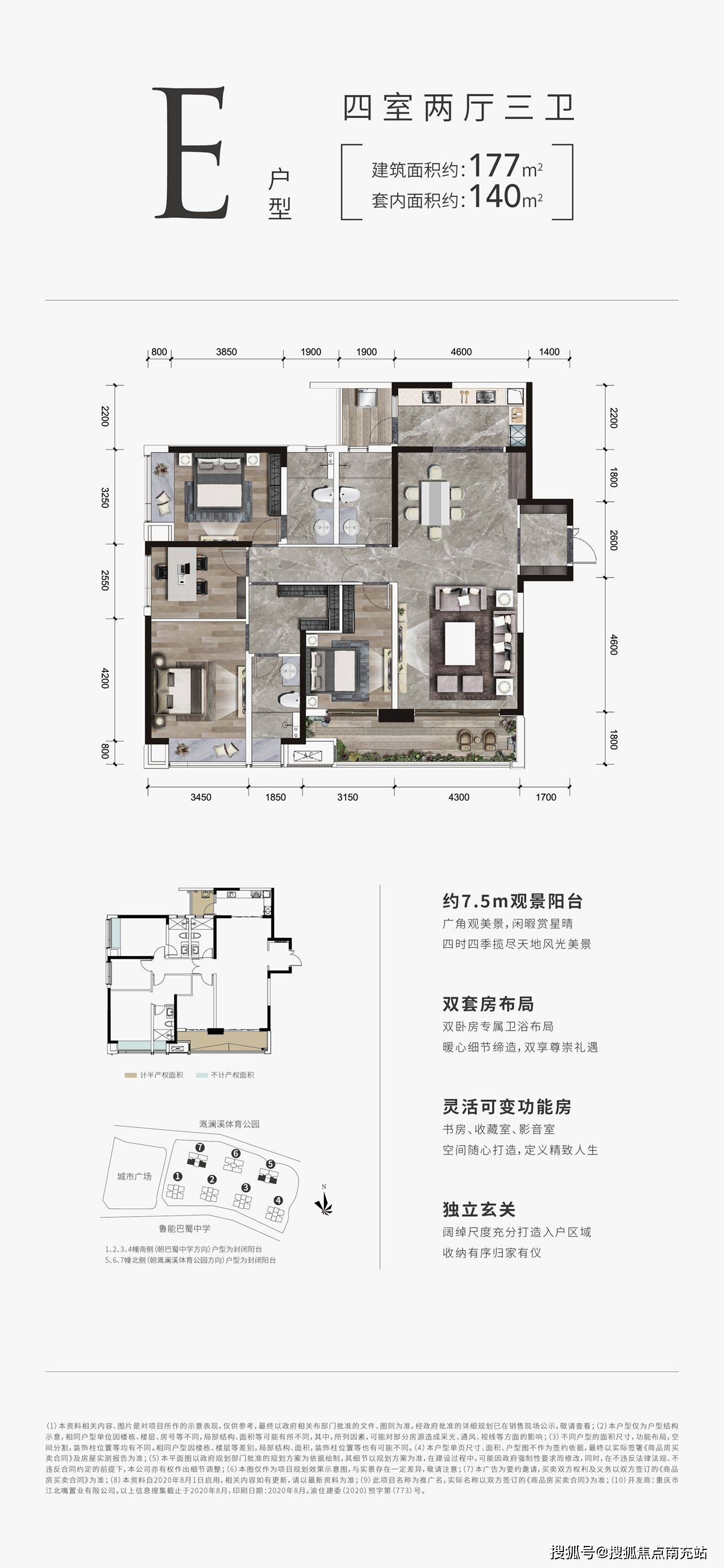 公园:项目旁360亩溉澜溪体育公园,享1.8万方花园广场