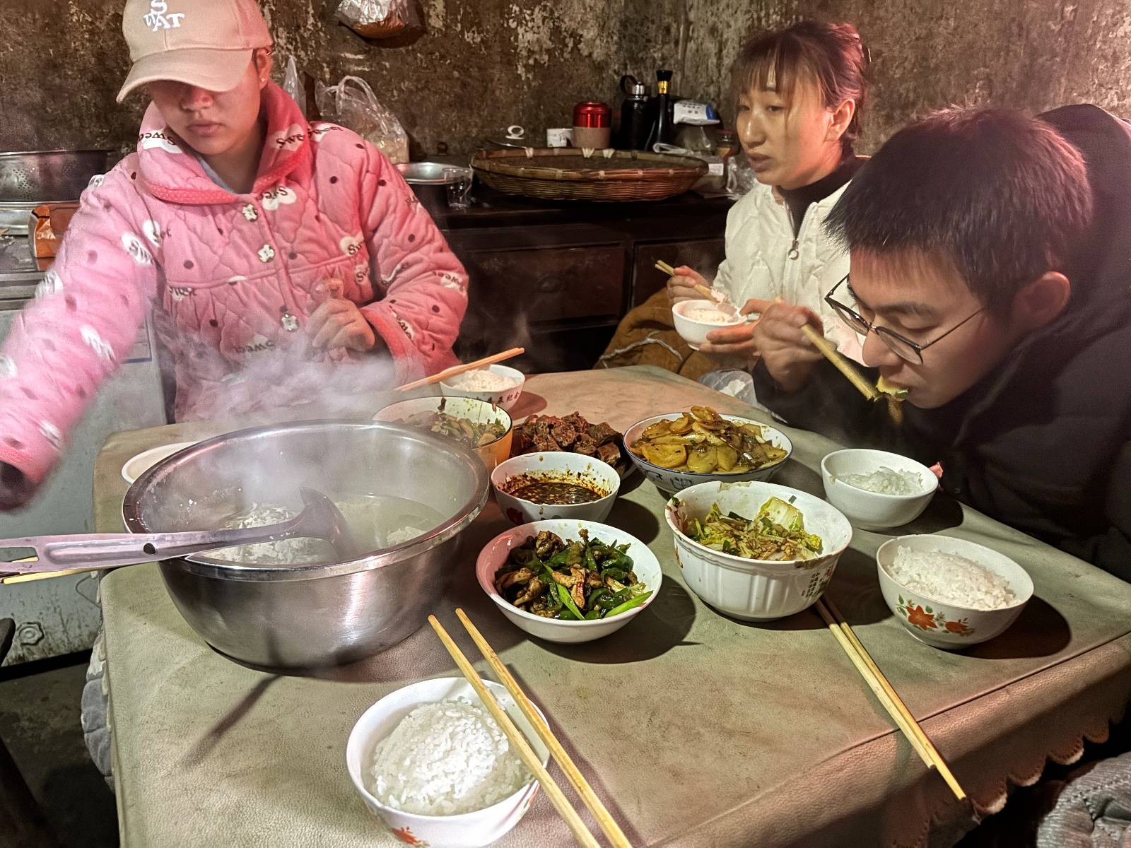 胡龙跟家人一起吃饭。图/九派新闻 徐玉婷