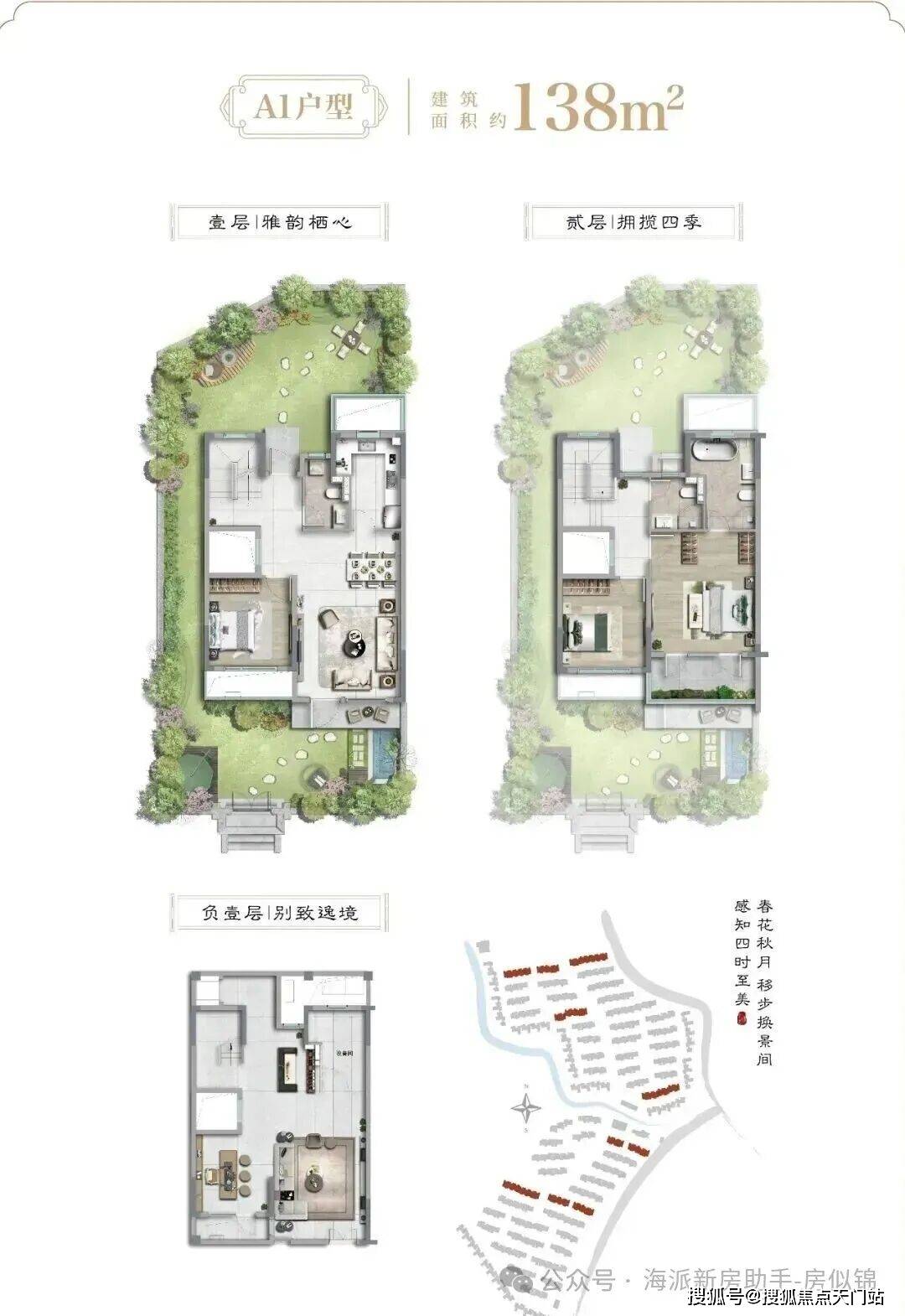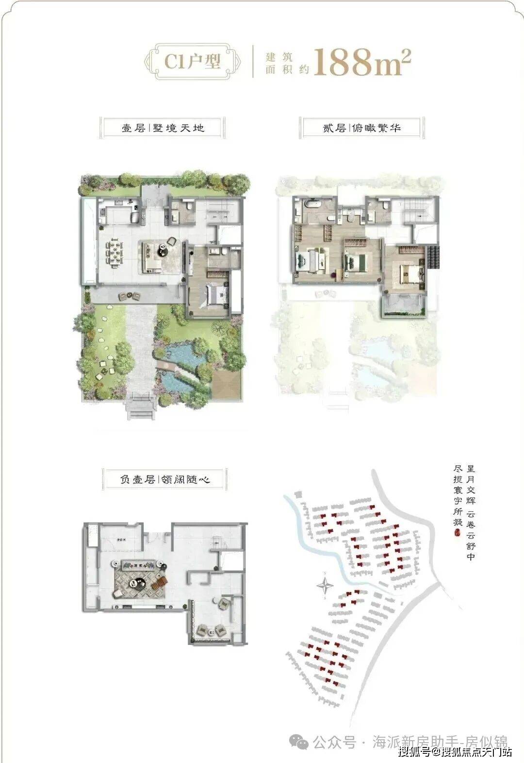 从户型设计上看:建面约138-188㎡联排与建面约211-214㎡院墅产品,庭前绿地,大面宽,地上仅2层,真正的低密宽境别墅,产品力断层式领先。