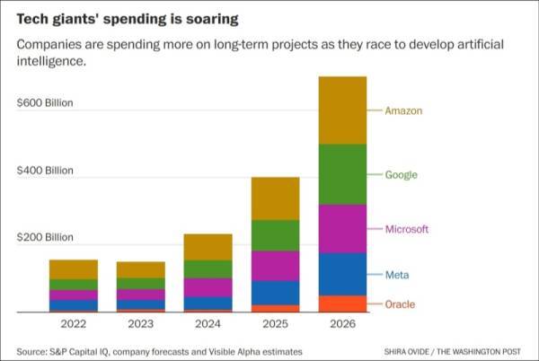 美国五家科技巨头2026年预计资本支出《华盛顿邮报》截图