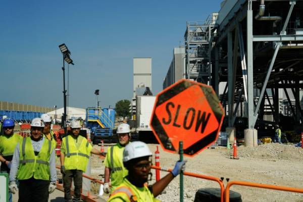 2025年9月,美国威斯康星州芒特普莱森特,工作人员在微软建设中的数据中心园区工作。IC Photo