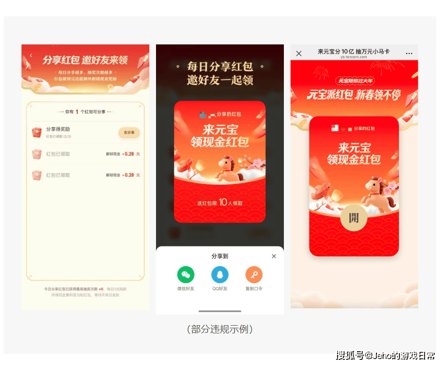 在此背景下,我们收到用户针对元宝的反馈和投诉,其相关春节营销活动存在通过“做任务”“领红包”等方式诱导用户高频分享链接到微信群等场景,干扰平台生态秩序、影响用户体验、对用户造成骚扰。