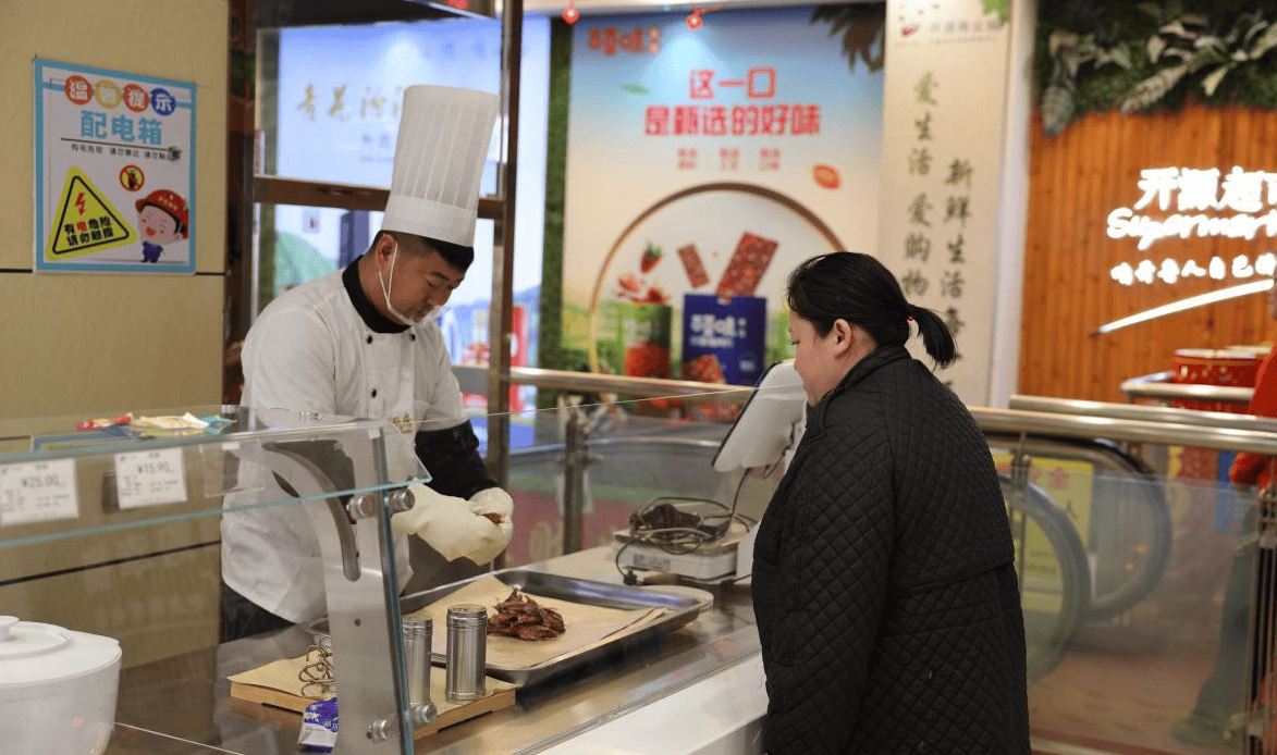 “活动力度挺大的,价格比平时便宜不少,今天过来买点小吃,一会儿再看看买点水果,办点年货。”王海燕拎着刚买的吃食开心地说。