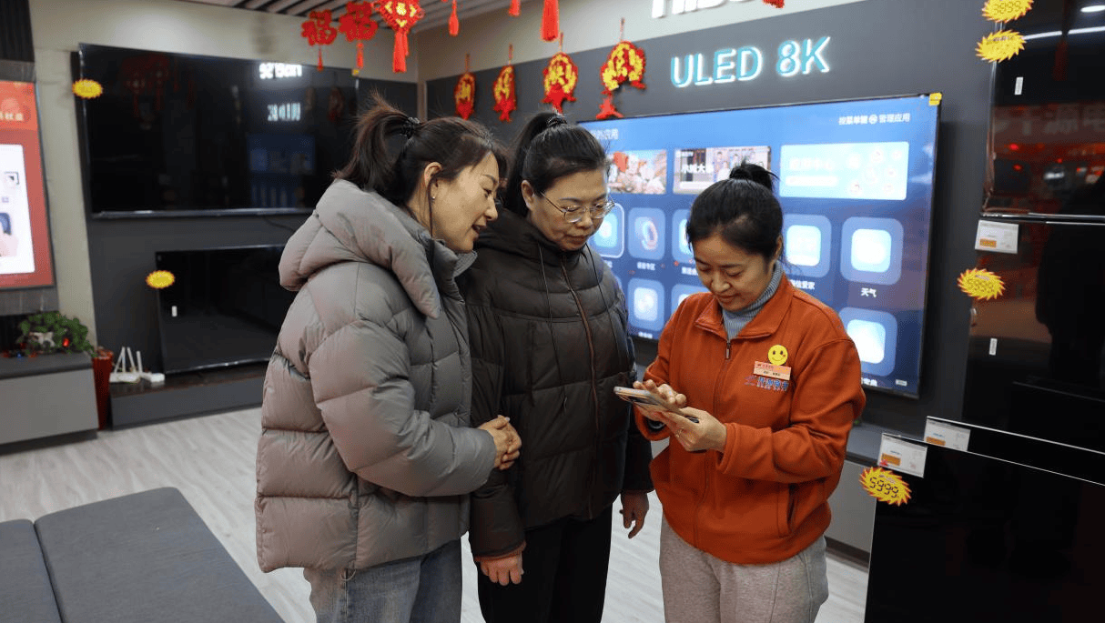 在开源商业城家电、数码展区,导购员正在向消费者讲解产品性能,帮助消费者核算政策补贴后的优惠价格。各类产品上显眼的黄色促销牌,吸引过往消费者驻足选购。“这款电视原价2699元,有了国家补贴省了400多元,价格很实惠,正好家里要换电视机,我就买了一台。”开鲁镇居民张立明和家人买到了心仪的商品,很是开心。