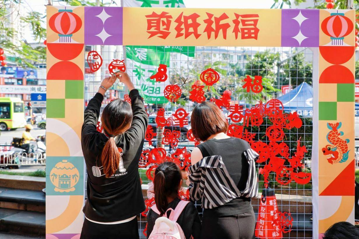 在 “年韵乡音”区,悠扬的石山民歌吸引年轻人驻足学唱、录音,这些声音片段将汇聚成一场特别的 大合唱。“剪纸祈福”区内,一幅幅寓意吉祥的窗花在市民手中诞生,并悬挂于 “万家祈福墙”。“团圆年味”区则汇聚了糟粕醋、海南粉、琼式月饼等特色小吃,让人在品尝中感受地道的 “海岛风味”。