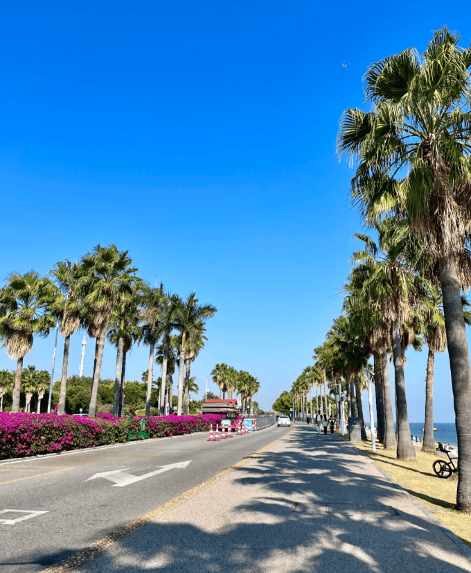早餐后,我们在环岛路租借了自行车,开始一段轻松的海岸骑行。海风拂面,椰影摇曳,儿子兴奋地喊:“我们像在拍电影!”珊珊在前面引路,不时停下来为我们介绍沿途景观,如书法广场、音乐雕塑等。在“一国两制统一中国”标语前,我们合影留念,珊珊也简要讲述了其背后的时代意义。