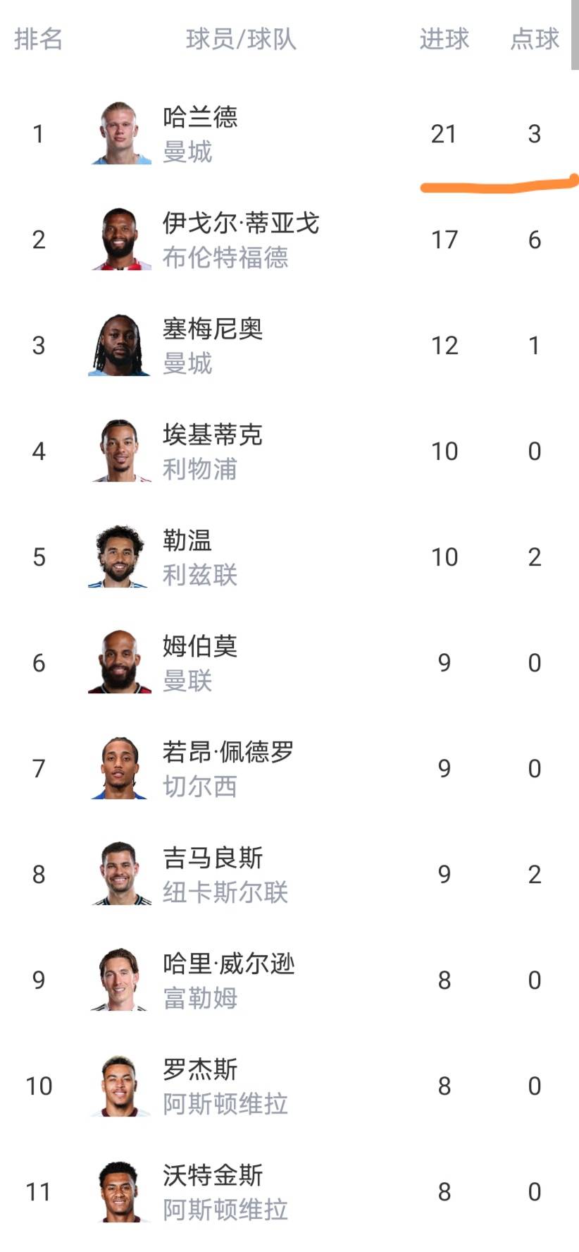 射手榜上,哈兰德领先优势扩大到4球。