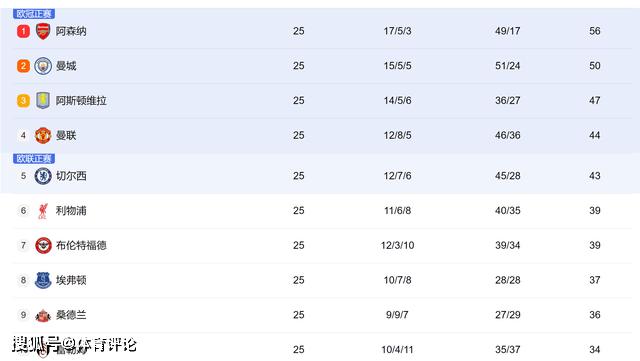 一场2-1之后,曼城积分50分,落后阿森纳6分,但是也领先了身后阿斯顿维拉3分。而利物浦,则只有39分,距离欧联杯赛区也有4分差距。