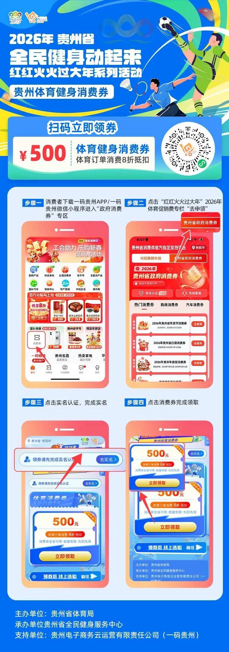 ✅线下:贵州省内指定公共体育场馆、商业健身场馆、滑雪场、体育用品零售门店和体育培训场馆,每次消费可抵扣实际消费额的20%。