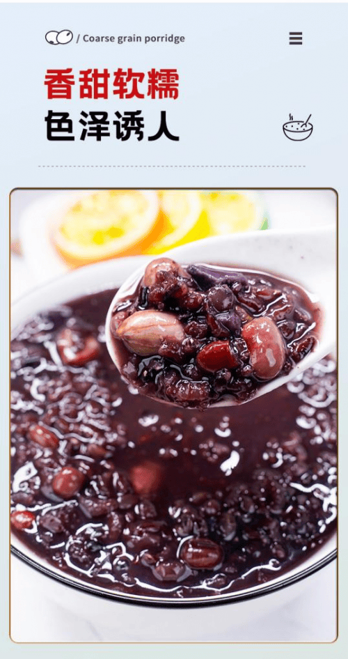 满足您不同的味蕾需求。每一种口味都经过精心调配,科学配比,口感丰富,层次分明。而且同煮同熟,锁鲜保香。独立小包装的设计,方便您随时随地享用美味的粥品。无论是早餐、晚餐还是作为加餐,一碗香喷喷、热乎乎的五谷膳食粥都是不错的选择。