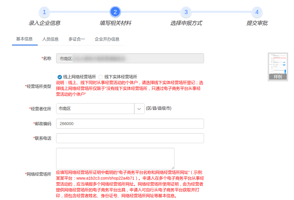 经营者以网络经营场所申请办理个体工商户登记的,该经营者住所所在地的县、自治县、不设区的市、市辖区负责个体工商户登记的部门为其登记机关。