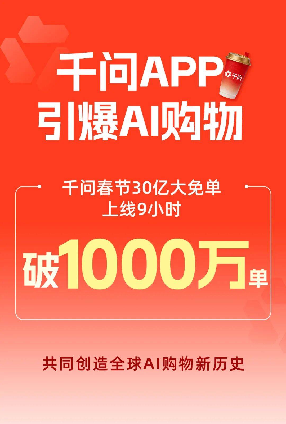 2月初,阿里千问“春节30亿大免单”活动正式上线,一杯杯免费的茶饮、一次次便捷的AI下单,让这个春节多了一抹科技的亮色,也让AI购物从概念走进了亿万普通人的日常生活。