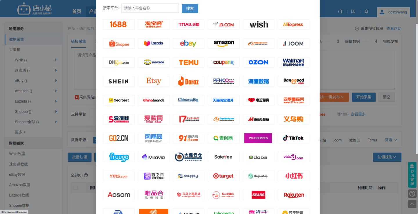2、卖家也可以通过跨境电商上品工具店小秘ERP,采集别人店铺产品到自己店铺。