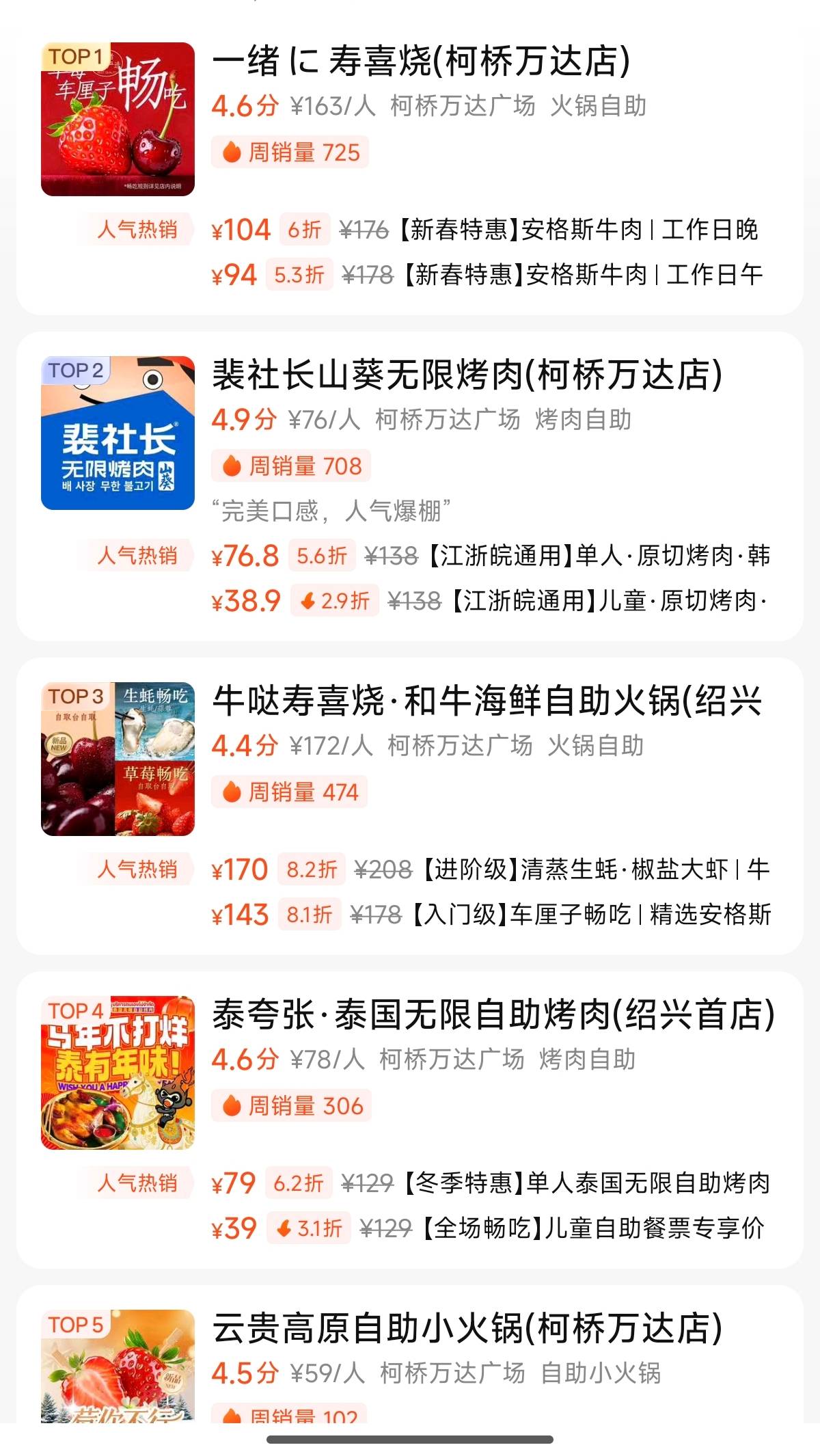 上线专属团购门票套餐(成人票优惠套餐、亲子票1大1小、家庭票2大1小、景区游船联票),套餐价格较线下购票优惠10%-20%,1个半月团购门票核销量达2600+张,套餐核销率达82%;景区店铺在美团平台的评分稳定在4.7分,月曝光量超80万,收藏量增长5000+,跻身绍兴文旅景区美团热销榜TOP5,美团平台引流占景区线上客流的55%。