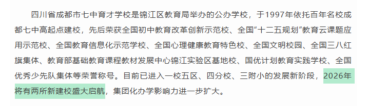 作为成都的教育强区,同时也是集团化办学非常成熟的区域,锦江区最近这几年在三圣乡下了不少工夫。早在梅香湖校区官宣之前,片区内就已经有了名校教育集团成员。