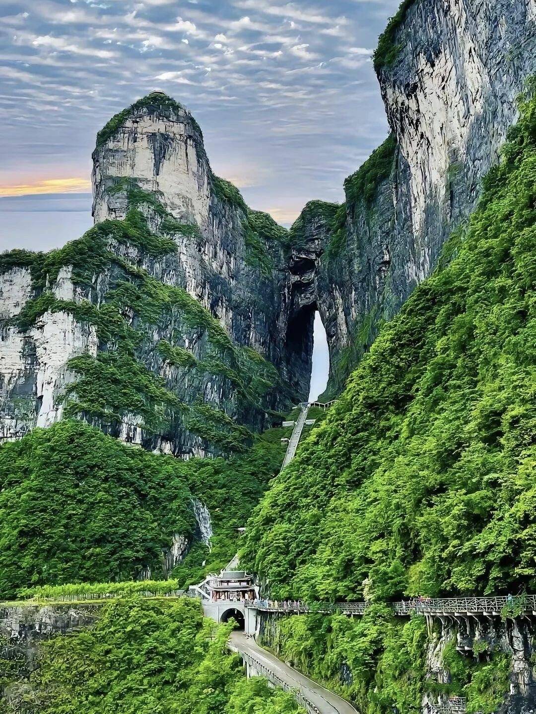 第3天:金鞭溪→天门山国家森林公园。早上9点,我们准时出发去金鞭溪,这里不愧是“天然氧吧”,溪水清澈见底,能看到小鱼在水里自在游动,两岸的古木参天,枝叶繁茂,遮住了大太阳,走在溪边,阵阵清凉扑面而来,哪怕是夏天来,也不会觉得热,简直是避暑胜地。我们没有走全程,只走了1.5小时的精华路段,沿途打卡了神鹰护鞭、千里相会等经典景点,偶尔还能遇到野生猕猴,特别可爱,但小安特意提醒我们,不要投喂猴子、拉紧背包,避免被猴子抓伤,我们同行的朋友就差点被猴子抢了零食,吓了一跳,大家一定要记牢。中午吃完简餐,就直奔天门山,小安提前帮我们订好了A线门票(索道上山+公路下山),不用排队,直接检票入园,省去了好多麻烦。坐7455米的世界最长高山索道,穿越云海,脚下的群山尽收眼底,越往上走,景色越震撼,建议大家坐索道时靠窗边,拍照更出片,能把云海和群山都拍进去。玻璃栈道需要另付5元鞋套费,恐高的朋友也不用怕,旁边有普通步道,敢走的朋友一定要体验一下,一边是悬崖峭壁,一边是绝美山景,刺激又出片。之后坐穿山扶梯下天门洞,不用爬999级天梯,对懒人来说,真的太友好了,节省了超多体力。提醒大家一句,张家界的天气预报特别不准,忽晴忽雨,出发前问小安就好,不用提前瞎准备衣物,还有景区里的“免费拍照”,别轻易轻信,大多是小照免费、大照收费,很容易被套路。