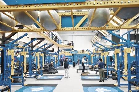 “感受发力,核心稳定住。”在由老厂房改造的MAXWELL运动表现训练中心,教练正指导学员。这里没有传统健身房的器械丛林,有的是针对性更强的专业设备。