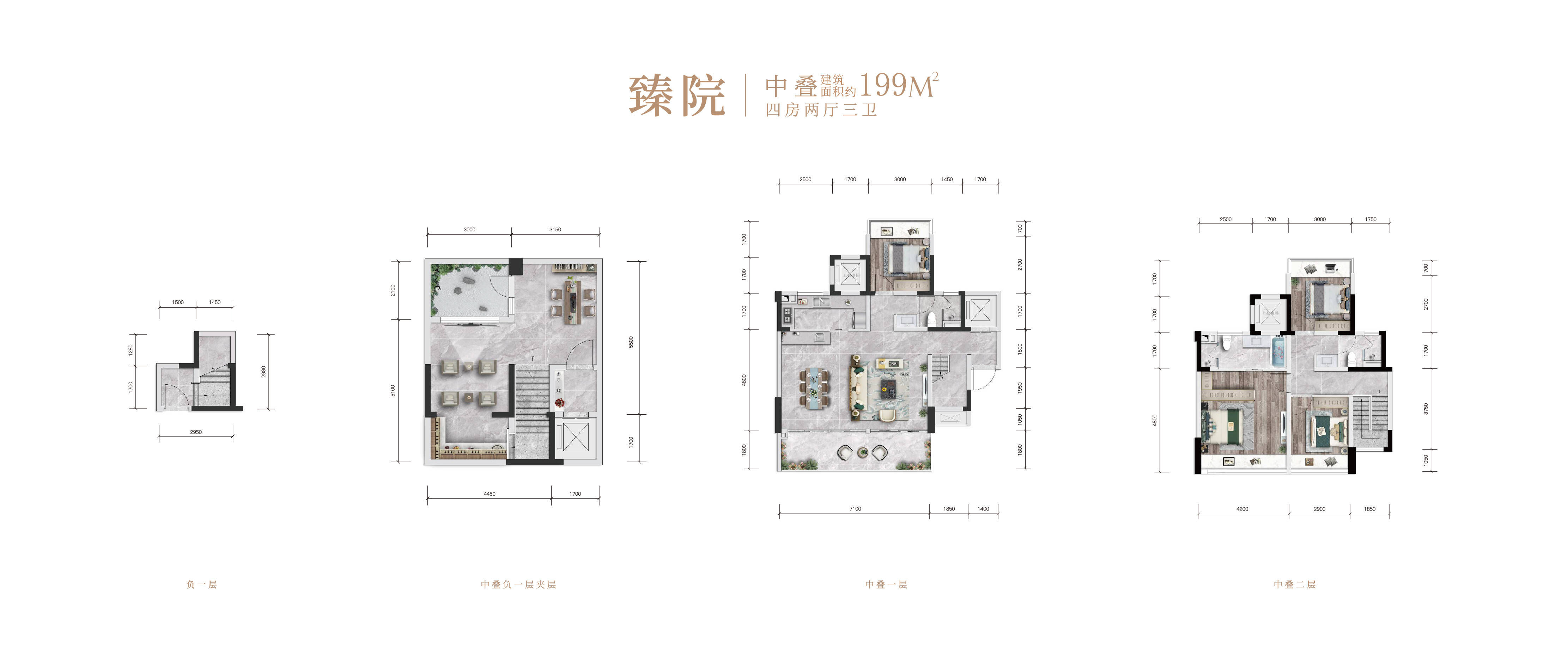 中叠户型:200-211㎡(四室两厅三卫),总价400-450万