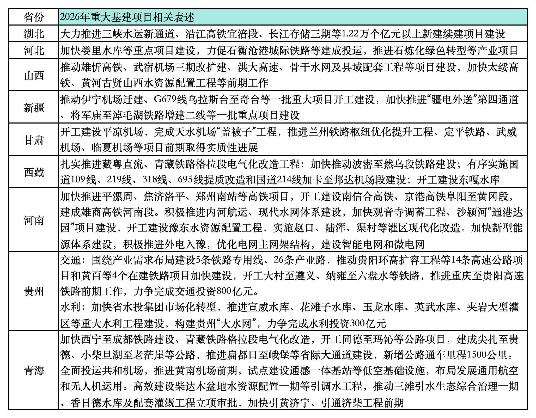 国盛证券首席经济学家熊园对界面新闻指出,从地方两会来看,2026年固定资产投资仍以“扩大有效投资”为主线,政策侧重点更加突出结构优化与民间投资带动。一方面,各地普遍强调以重大项目为抓手,加快交通、能源、水利及新型基础设施等领域建设,继续发挥基建投资对稳增长的支撑作用;另一方面,更加注重提升产业投资比重,围绕新质生产力、战略性新兴产业及数字基础设施布局增量。