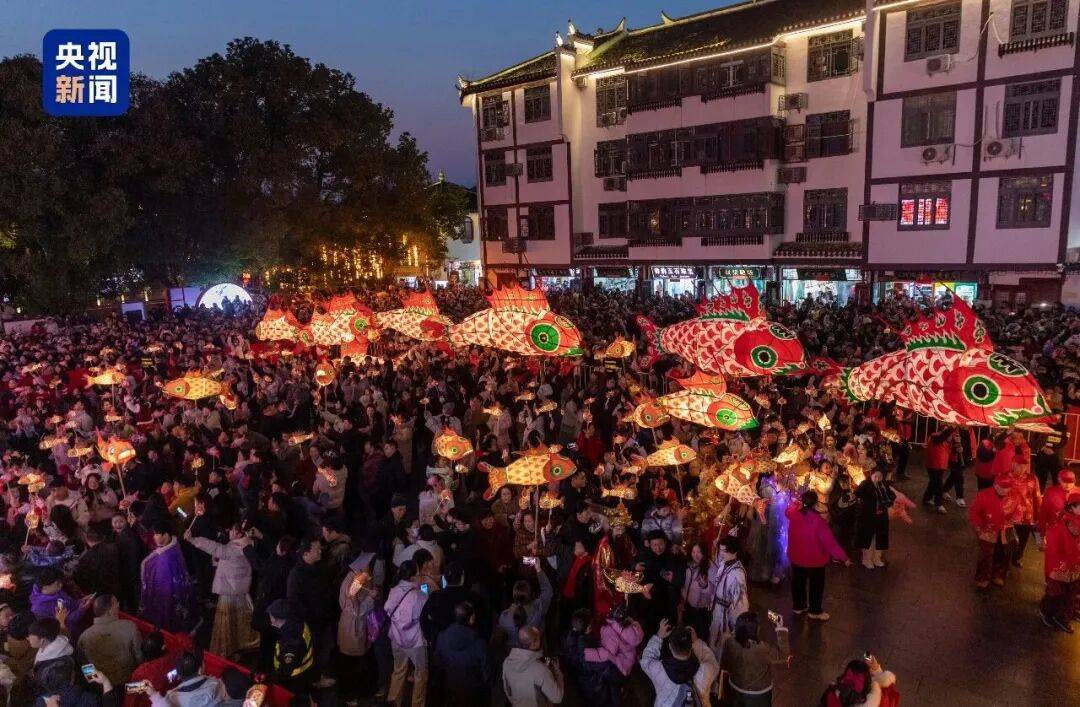 荧幕上的惊艳亮相,落地成了触手可及的烟火气。在合肥,三河古镇把春晚里的“千鱼”巡游变成了常态,近3000盏鱼灯点亮夜空,游客可以提一盏小鱼灯,穿行在徽派建筑的水乡梦境里。