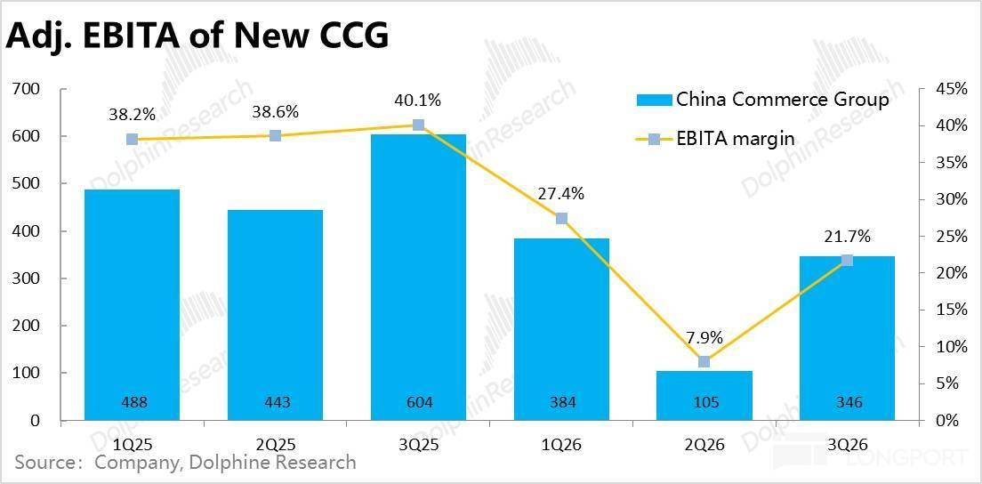 2、外卖亏损虽如期减亏,但进展不算很好:中国电商集团本季的 adj.EBITA 为 346 亿,比去年同期减少了约 265 亿。考虑 CMR 近乎没增长,保守假设原淘天集团的利润本季同比微降,则倒推闪购的净亏损本季约 250 亿。