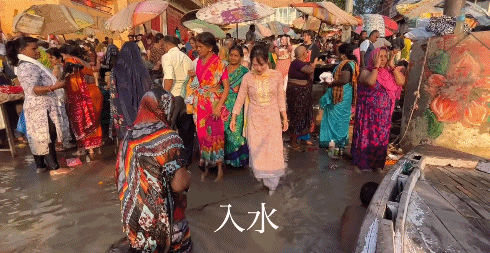 为了表现对圣河的尊敬和身为旅行博主的敬业,直接捏着鼻子把自己按头泡进恒河水里三次;后面更是直接放开洗起了脸。