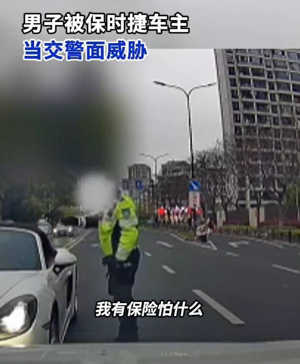 据点时新闻,4月8日,浙江台州,一保时捷车主开远光灯照射视频车主,随后直接违规越线逆行行驶堵路,交警到场后对其劝阻长达2分钟,最终,保时捷车主驶离视频车主车旁时,当着交警面威胁视频车主:“下次不要被我碰到,绝对把你撞了”。