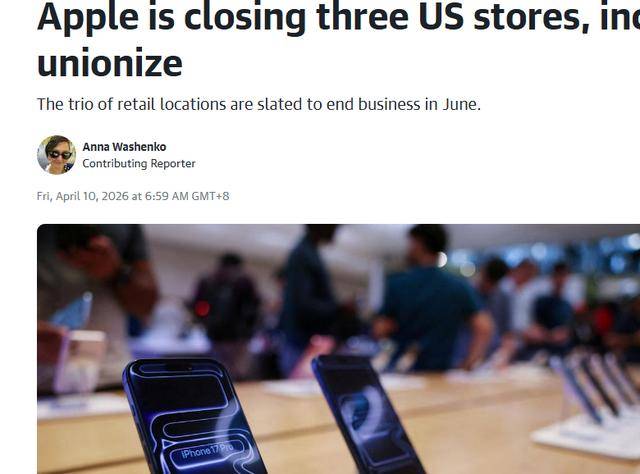 【环球网科技综合报道】4月10日消息,据瘾科技报道,苹果官方确认将于今年夏季关闭三家美国线下零售店,其中包含全美首家与苹果达成劳资协议的工会门店,此举随即引发工会强烈抗议,被指责为“恶意打压工会”。