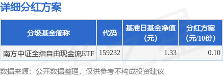 证券之星消息,4月10日发布《南方中证全指自由现金流交易型开放式指数证券投资基金分红公告》。本次分红为2026年度第1次分红。公告显示,本次分红的收益分配基准日为3月3日,详细分红方案如下:
