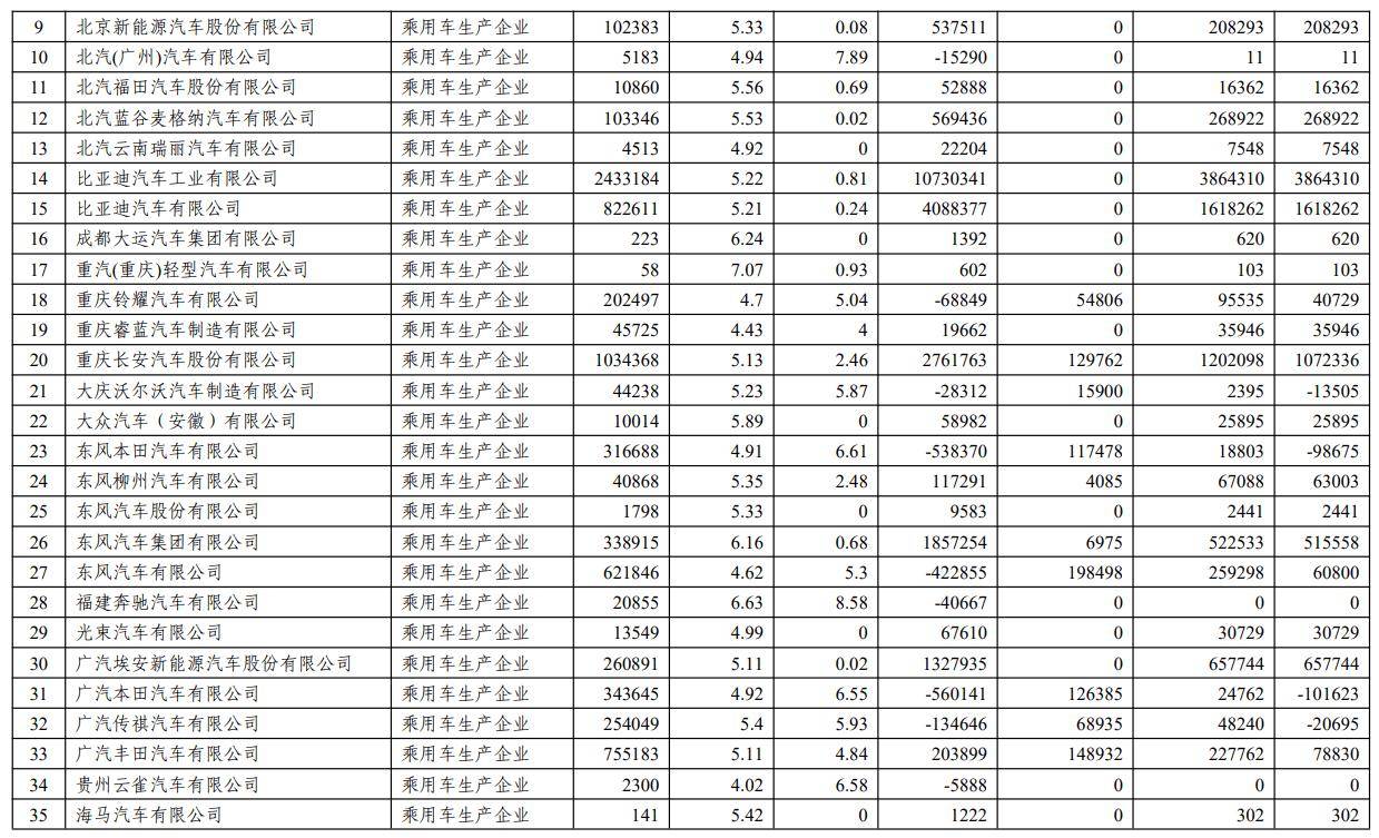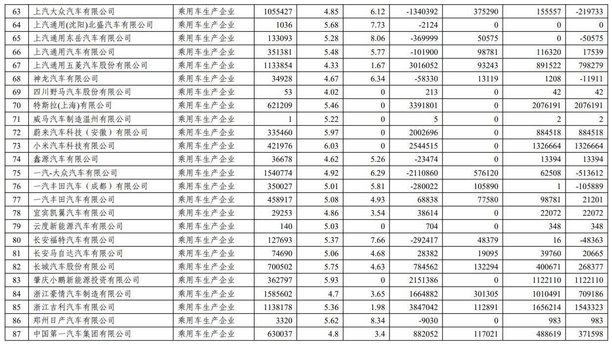 而在新能源汽车积分方面,比亚迪、特斯拉、吉利汽车排名前三,其余超百万积分的车企包括小米汽车、零跑汽车、小鹏、长安汽车。