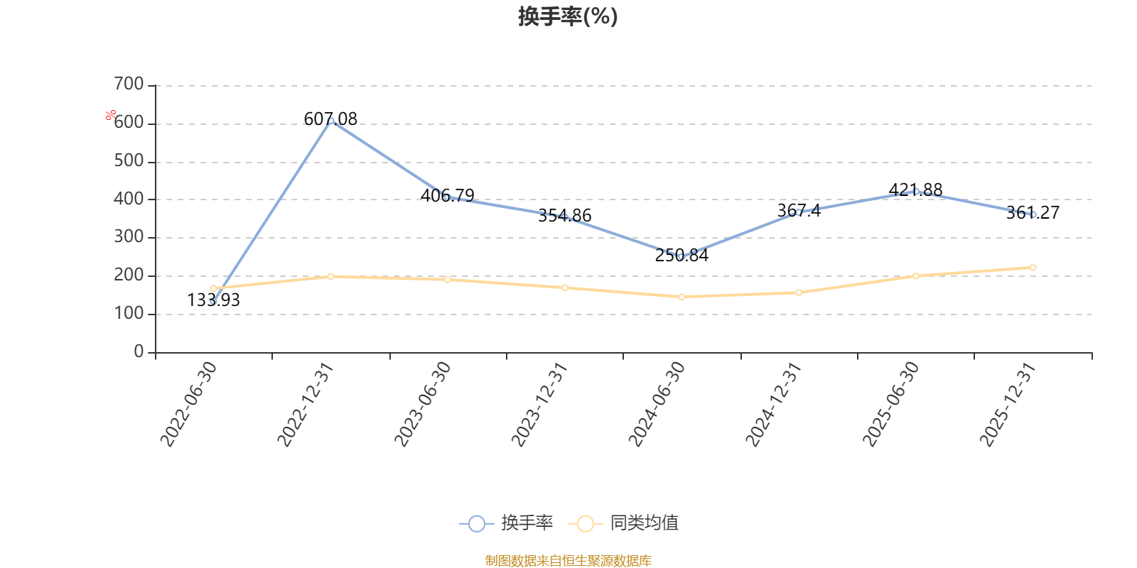 截至2025年12月31日,基金最近一年换手率约899.43%,持续3年高于同类均值。