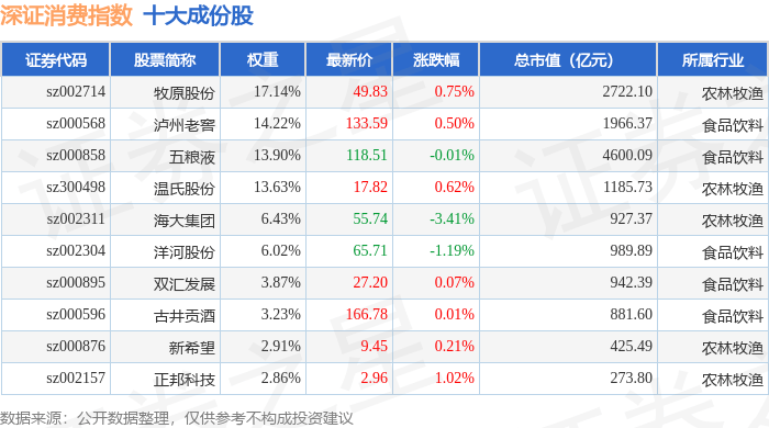 资金流向方面,深证消费(399617)指数成份股当日主力资金净流出合计5373.15万元,游资资金净流入合计1.49亿元,散户资金净流出合计9488.95万元。成份股资金流向详情见下表: