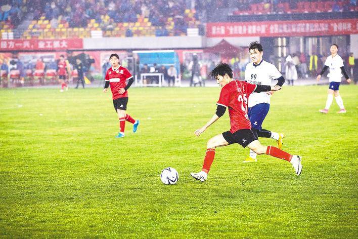 在赵棚蓝莓队队员、社区书记杨学陆看来,每场比赛都是一次行走的乡土文化“T台秀”。这位有着20多年球龄的业余爱好者,受“乡超”感召从武汉返乡任职。他邀请网络大V、球迷会长等助阵,运营的新媒体账号,成为推广家乡文化和产品的重要窗口。