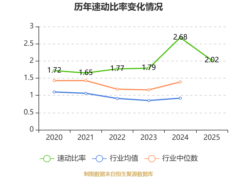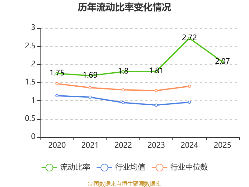 2025年,公司流动比率为2.07,速动比率为2.02。