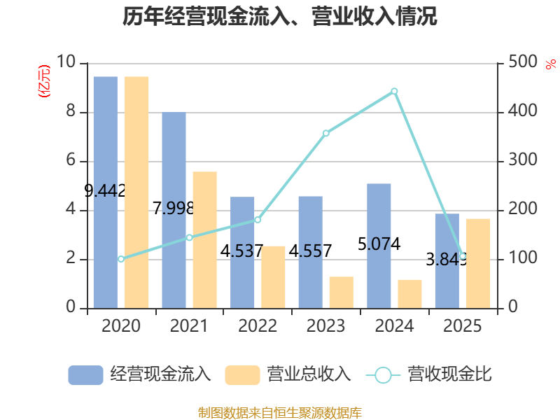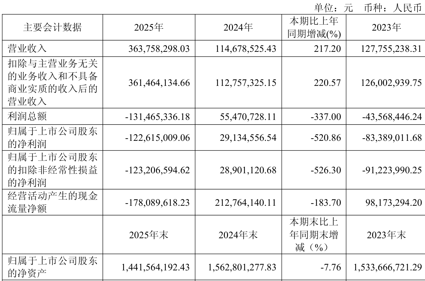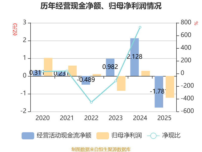 截至2025年,公司经营活动现金流净额为-1.78亿元,同比减少3.91亿元;筹资活动现金流净额1.22亿元,同比增加4.68亿元;投资活动现金流净额-8775.09万元,上年同期为4906.84万元。