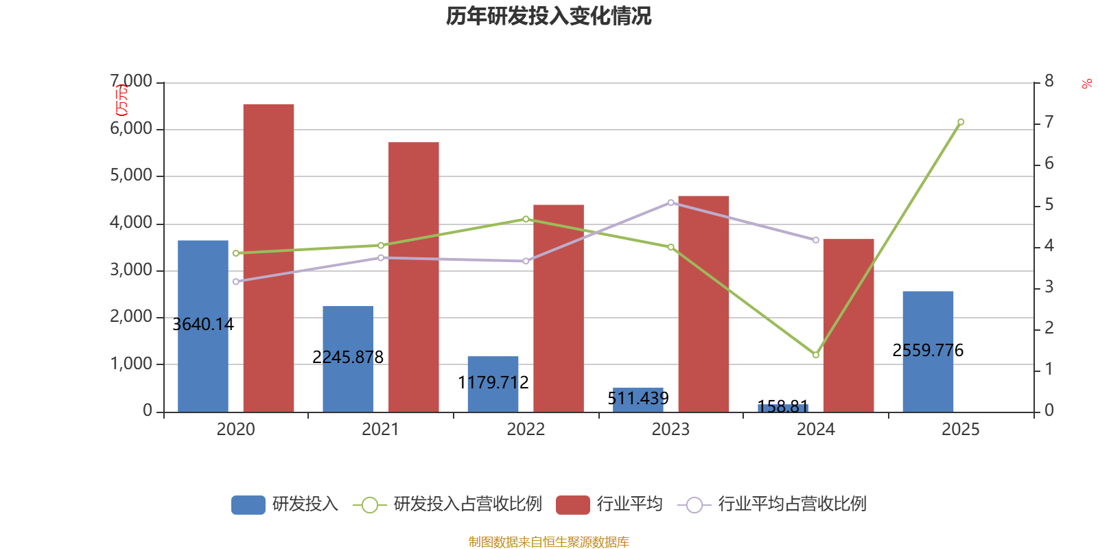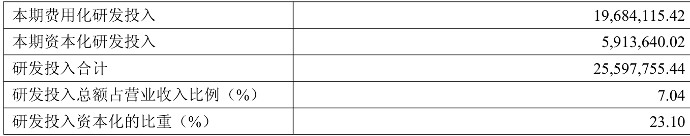 2025年全年,公司研发投入金额为2559.78万元,同比增长1511.85%;研发投入占营业收入比例为7.04%,相比上年同期上升5.66个百分点。此外,公司全年研发投入资本化率为23.1%。