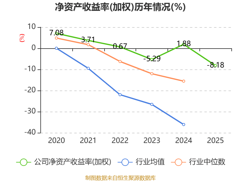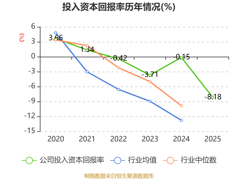 数据显示,2025年公司加权平均净资产收益率为-8.18%,较上年同期下降10.06个百分点。公司2025年投入资本回报率为-8.18%,较上年同期下降8.03个百分点。