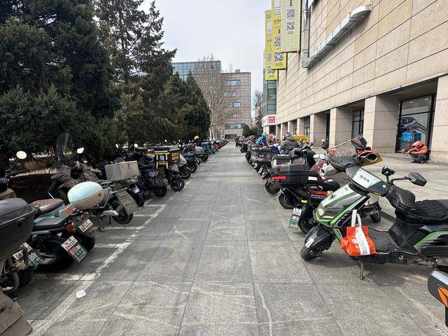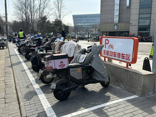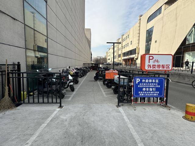 通过与商圈内的上地华联商厦、宏达大厦多次沟通协调,华联商厦主动腾退了14个机动车位,宏达大厦退让了4个机动车位,全部改造为非机动车专用停放区。华联商厦还主动开放了原来供员工车辆停放的内部场地,划定了距取餐口不足50米的外卖专用区,将原本挤在马路上的外卖车“请”进了院子。在华联商厦南侧,原本聚集在机动车道边的外卖车辆,也被统一引导至楼宇之间的内部道路。