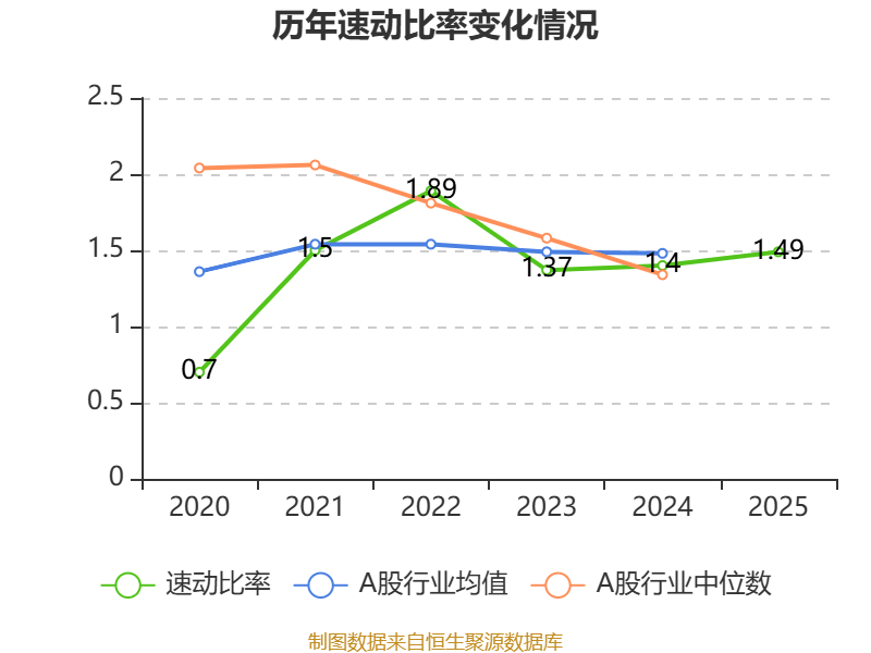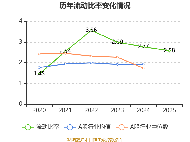 2025年,公司流动比率为2.58,速动比率为1.49。