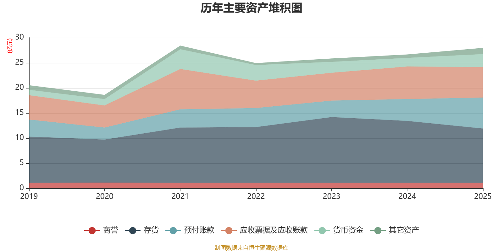 资产重大变化方面,截至2025年末,公司存货较上期末减少12.32%,占公司总资产比重下降7.61个百分点;预付账款较上期末增加41.51%,占公司总资产比重上升5.71个百分点;货币资金较上期末增加51.1%,占公司总资产比重上升2.83个百分点;应收票据及应收账款较上期末减少6.31%,占公司总资产比重下降2.6个百分点。
