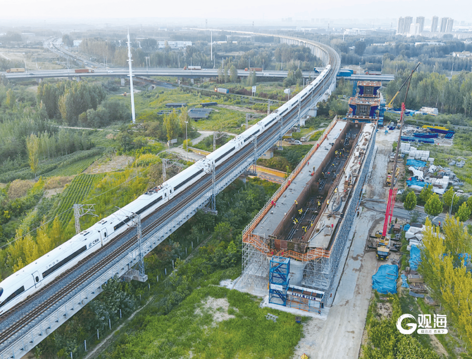 潍宿高铁至青岛连接线架梁施工现场。