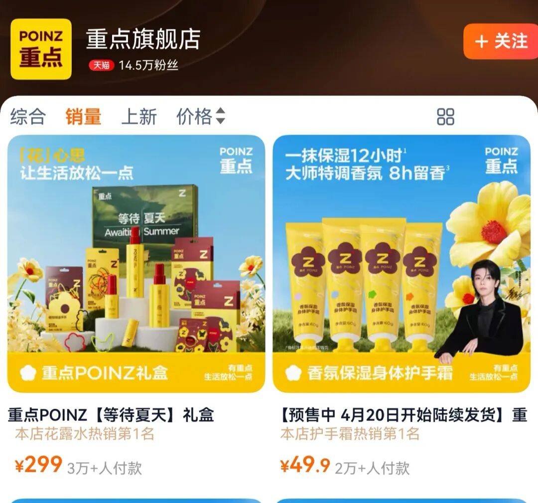 今年小阔科技与华晨宇合资打造的日化家居品牌“重点”,上线即爆卖。其全渠道 GMV 已突破 2100 万元,一举拿下天猫洗护、护手霜、花露水等多个类目店铺榜榜首,这也成为参半多品类扩张布局中的重要成果。