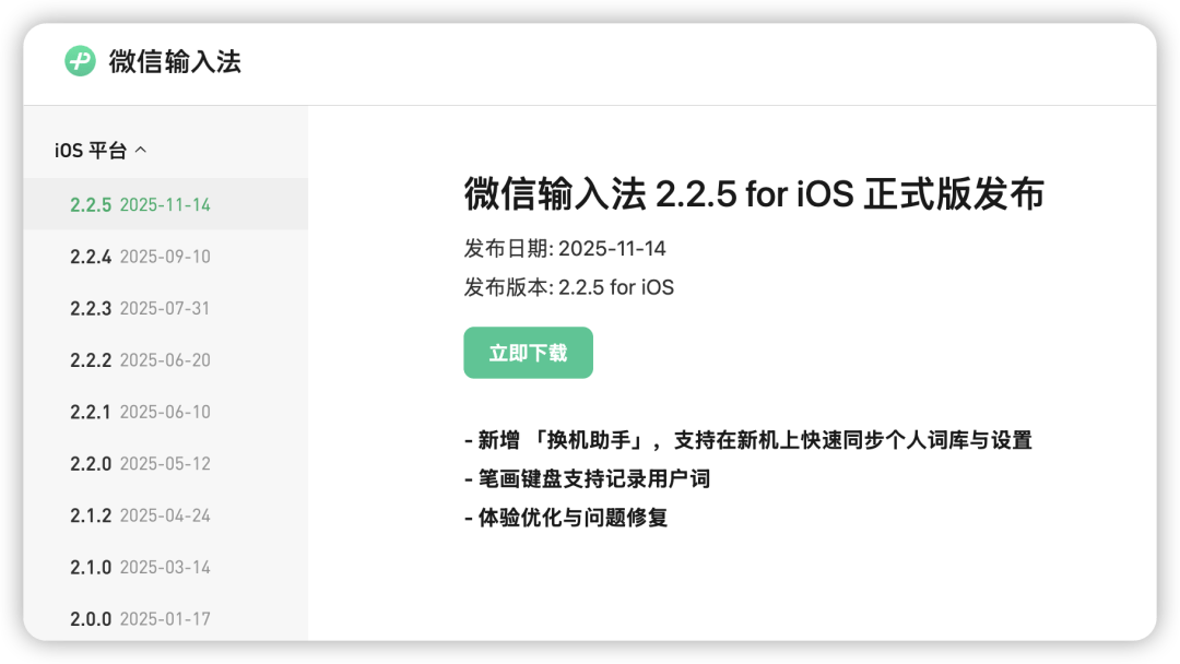 相比之下,微信输入法于 2023 年发布,距今已经历为期 2 年的更新迭代,也积累了相当一批用户。