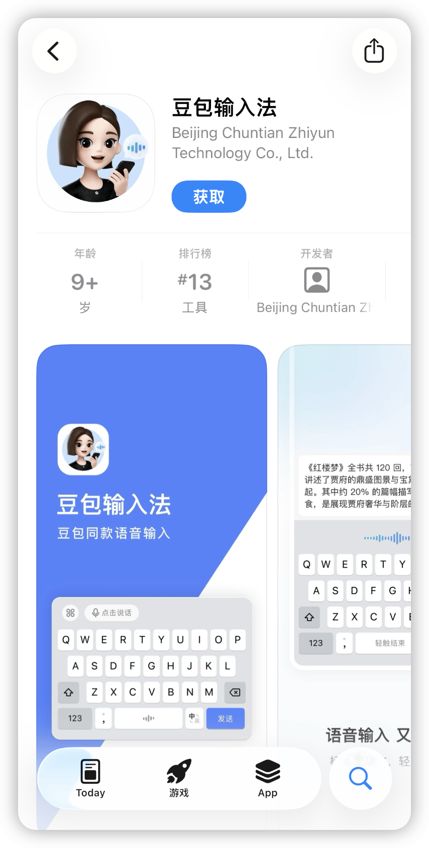 现在我们就可以进入 App Store 中,搜索下载「豆包输入法」了。