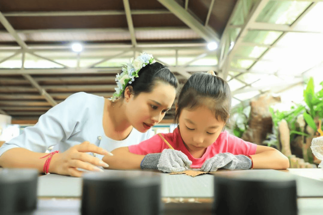 其中,作为云南首个昆虫主题互动探索馆,园区内的“云南虫谷森林体验馆”,开设了“昆虫王国”生态观察、“标本制作”与“昆虫旅馆”搭建等实践活动环节。此外,“木刻体验”“植物扎染”与“秘境太阳河情景秀”等融合非遗与民族艺术的课程,进一步丰富了游客体验。参与者通过追踪动物踪迹、记录生态数据、亲手搭建昆虫栖息地等互动,亲历生物多样性保护的完整过程。园区也因此成为生物多样性保护的“活态博物馆”。