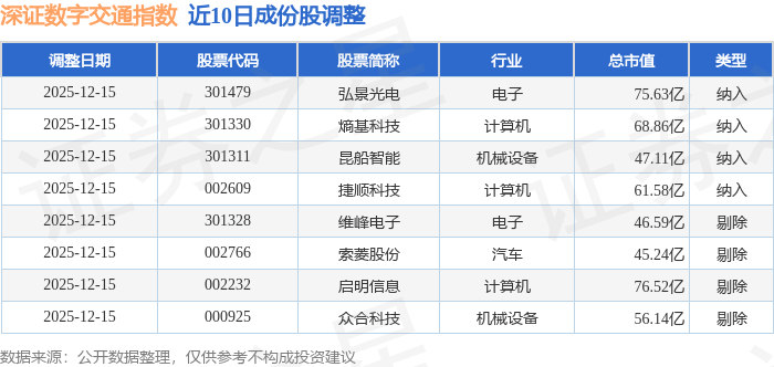 近10日内深证数字交通(970049)指数成份股做了调整,新纳入了4只股票,剔除了4只股票。
